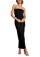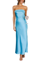 Tato dlouhá saténová bezramínková šaty vytváří elegantní a ženskou siluetu. Lehké a vzdušné, jsou ideální pro letní večery, svatby nebo speciální příležitosti. Jejich hedvábný spad dodává nádech rafinovanosti a zároveň zajišťuje maximální pohodlí. K dispozici v několika barvách, aby vyhovovaly všem stylům.