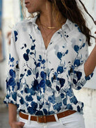 Claire | Elegant Blůza – Modrý Tisk a Vzdušná Silueta