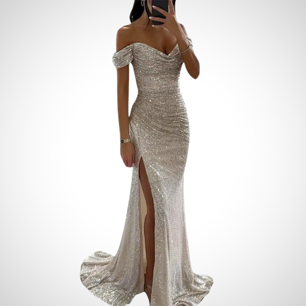 Tato dlouhá bezramínková šaty nabízí plynulou a elegantní siluetu. Její jednoduchý design zvýrazňuje ramena a dekolt. Ideální pro zvláštní příležitosti, spojuje pohodlí a styl.