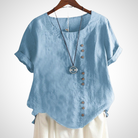 Denne blouse kombinerer elegance og komfort til dine sommerdage. Dens håndlavede design sikrer en kvalitet og opmærksomhed på detaljer, der er exceptionel. Tilgængelig i flere farver, tilpasser den sig til alle stilarter.
