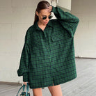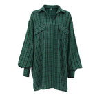 Denne oversized skjorte har et dristigt ternet mønster og faldende skuldre for et moderne look. De voluminøse ærmer med manchetter tilføjer et feminint touch. Fremstillet i en blanding af behagelige stoffer, er den ideel til alle sæsoner.