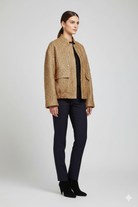 This short golden jacket instantly adds a bright touch to your outfit. Its modern cut and subtle shine make it ideal for evenings or special occasions. Easy to pair, it combines comfort, style, and refinement.