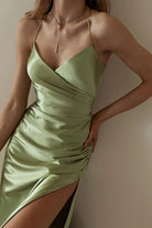 Giovanna | Midi Φόρεμα με Σχίσμα – Ελαφρύ Στυλ και Λεπτές Τιράντες