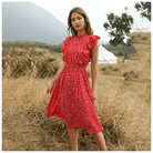 Αυτή η μακριά μποέμικη κομψή φόρεμα μαγεύει με την έντονη κόκκινη απόχρωσή της και τη ρέουσα κοπή της. Το κομψό και χαλαρό στυλ αναδεικνύει τη σιλουέτα με ελαφρότητα. Ιδανική για ηλιόλουστες μέρες και καλοκαιρινές βραδιές.