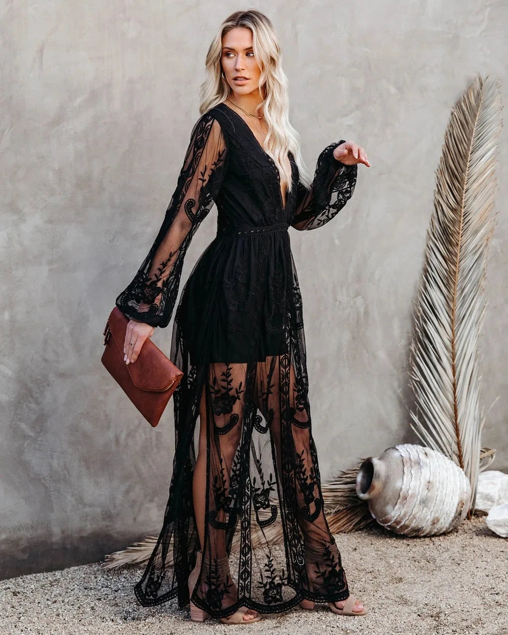 ¿POR QUÉ ELEGIR EL VESTIDO LARGO NEGRO BORDADO DE SILUETA ELEGANTE Y MODERNA?