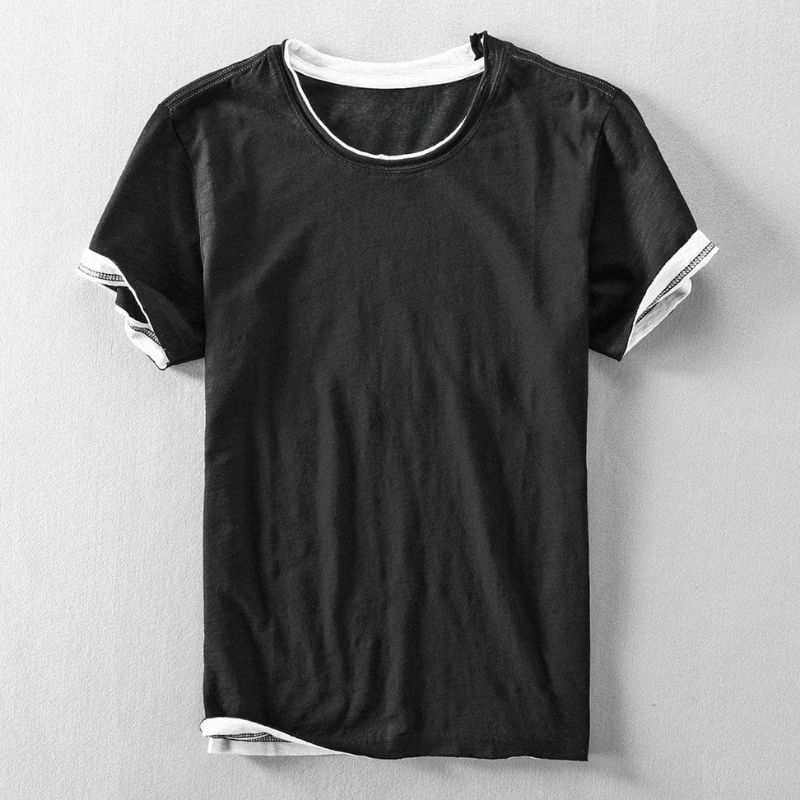 Tämä t-paita tarjoaa äärimmäisen pehmeän tunteen ja optimaalisen mukavuuden koko päivän ajan. Sen klassinen pyöreä kaula-aukko ja näkyvillä olevat hihansuut sopivat erilaisiin tilaisuuksiin. Suunniteltu niille, jotka arvostavat tyyliä tinkimättä hyvinvoinnista.