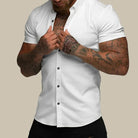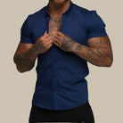 Tämä kapea paita yhdistää modernin tyylikkyyden ja mukavuuden. Se on valmistettu korkealaatuisista stretch-materiaaleista, jotka tarjoavat joustavuutta ja hienostunutta ilmettä. Lyhyet hihat antavat elegantin ja rentoutuneen leikkauksen, joka on ihanteellinen lämpimiin päiviin.
