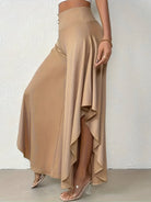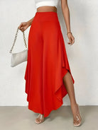 המכנסיים הללו מתבלטים בחיתוך הנוזלי והאסימטרי שלהם שמוסיף נופך של אופי למראה שלך. המותן הגבוהה מחמיאה לדמות בזמן שהבד הקל מציע תחושת נוחות לאורך כל היום. מושלם למראה נינוח אך מתוחכם, בעיר כמו בחופשה.