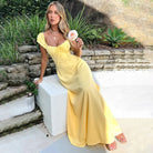 שמלה ארוכה זו לנשים מציגה מותן אימפריה מחמיאה, צווארון מרובע ושרוולים נפוחים מקסימים. אידיאלית ליציאות לא פורמליות, אירועים במהלך היום או ערבים, היא משלבת סגנון ונוחות. פריט חובה בארון הבגדים הקיץ שלכם.