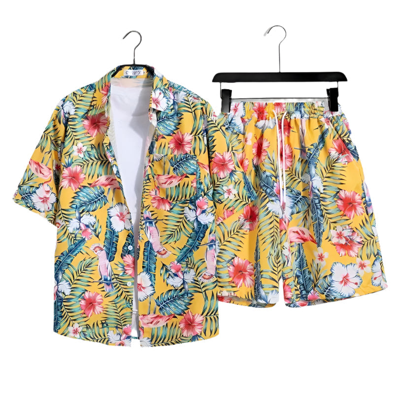 Ez a könnyű és légáteresztő szett ideális a meleg napokra. Rövid ujjú inget és hozzá illő sortot kombinál, hogy laza megjelenést biztosítson. Tökéletes nyaraláshoz, szabadidőhöz vagy mindennapi használatra.