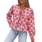 このブラウスは女性らしいシルエットと魅力的な花柄を特徴としています。長袖のデザインとユニークな襟がエレガンスを加えています。カジュアルな場面にぴったりで、スタイルと快適さを兼ね備えています。