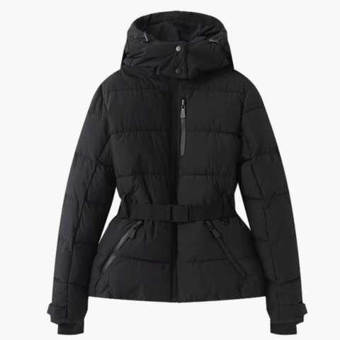 ジュリア | フード付きベルト付きダウンジャケット レディース — 優雅さと冬の暖かさ
