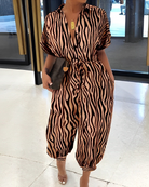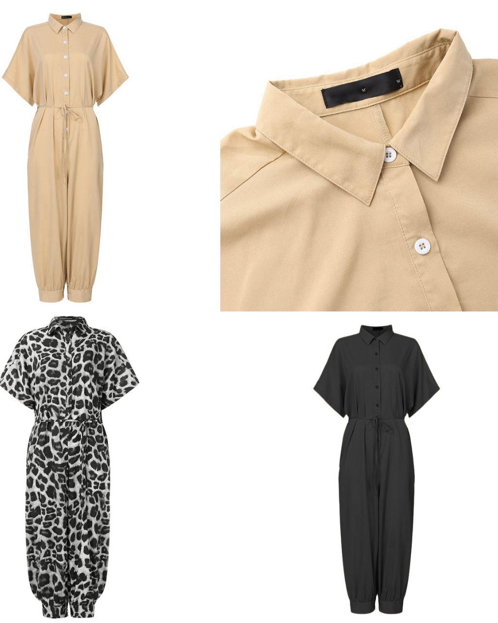 Această salopetă cu brâu oferă un stil modern și o croială confortabilă. Designul său cu nasturi și picioarele strâmte aduc o notă trendy, ideală pentru ieșirile sau zilele tale relaxate.