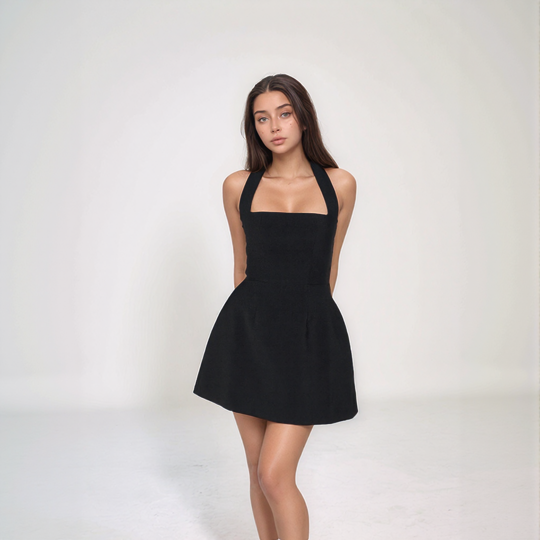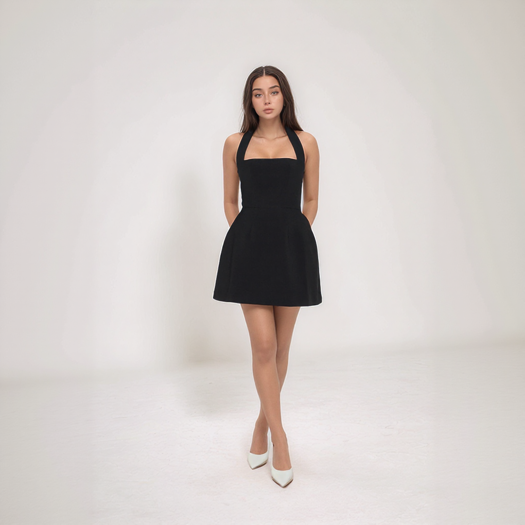 Sandra | Rochie Mini de Vară – Decolteu Halter și Volum Fluid